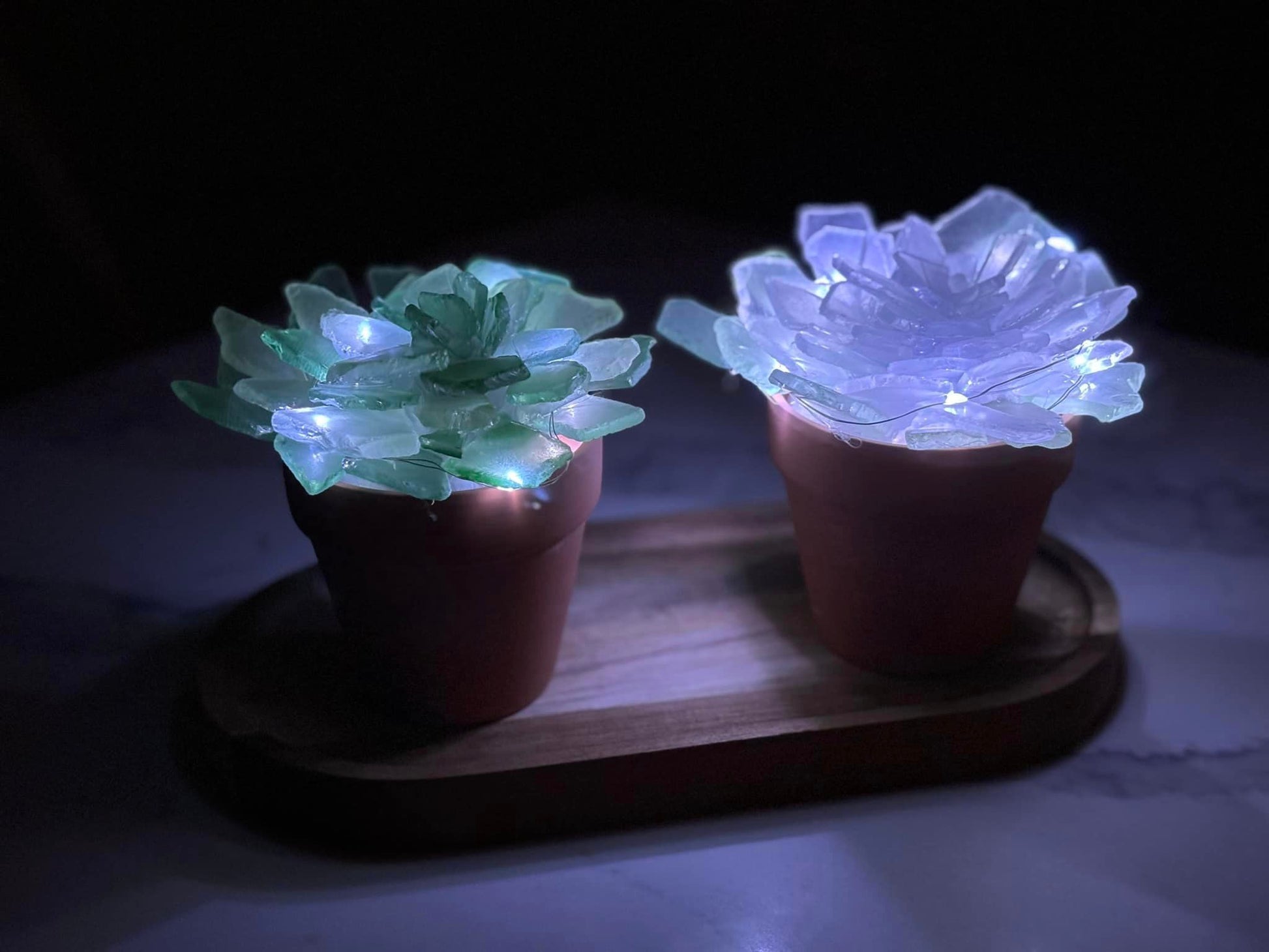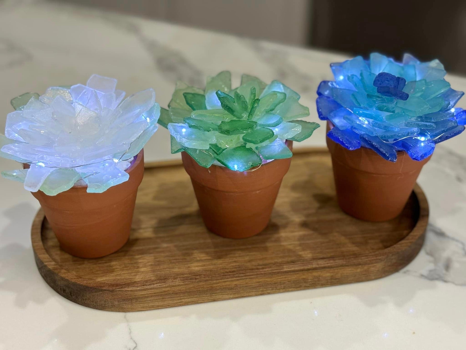 During this hands-on class, you’ll create three glowing sea glass succulents using colorful sea glass, soft lights, and terracotta pots. You’ll choose your colors, layer your glass, and leave with a finished trio that adds a touch of coastal charm to any space.